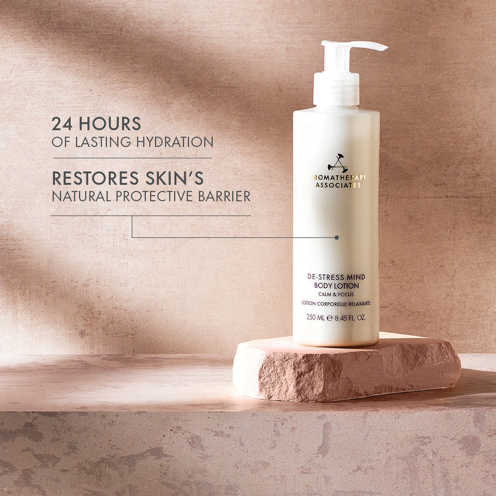 Unwind with our NEW De-Stress Mind Body Lotion, a luxurious fast-absorbing formula that leaves skin soft, smooth, and beautifully fragranced with calming herbal and woody notes of Camomile, Petitgrain, and Frankincense.